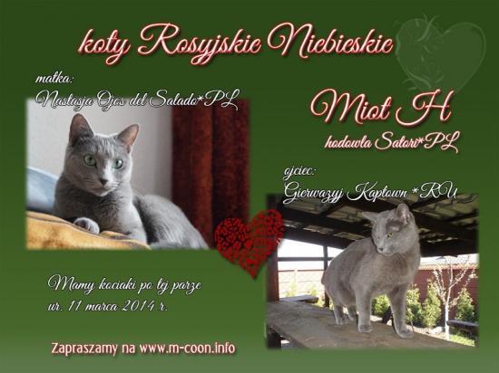 Śliczne rodowodowe kociaki Rosyjskie Niebieskie ur. 11.03.2014r po doskonałych w typie rodzicach (ojciec Europe Champion) rozglądają się za swoimi nowymi właścicielami.